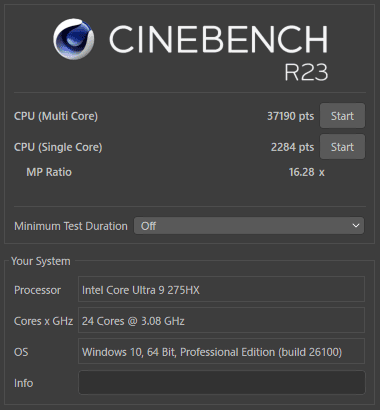 | CINEBENCH R23 | CPU(M) | 37190 pts |