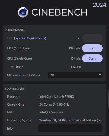| CINEBENCH 2024 | CPU(M) | 1995 pts |