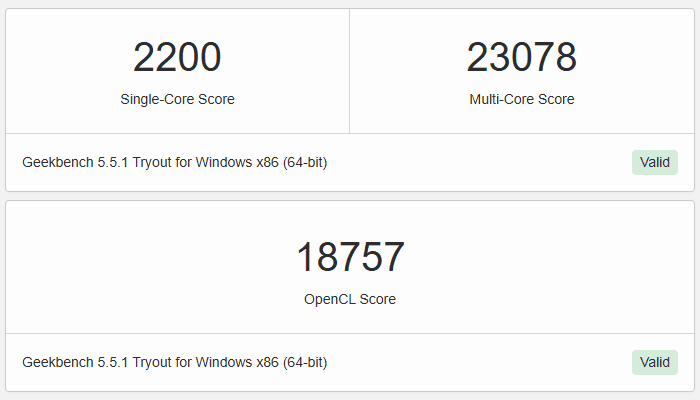 | GeekBench5 | Single | 2200 |