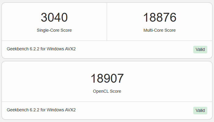 | GeekBench6 | Single | 3040 |