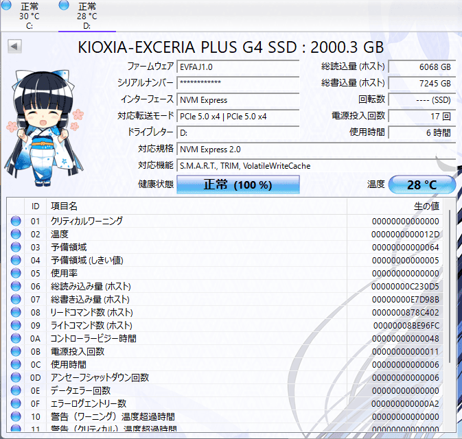 仕様上ではリード7,000MB/s、ライト6,700MB/sで、実測ではリード7,288MB/s、ライト6,945MB/sをたたき出した、優秀なSSDです。