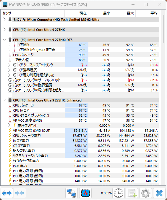 体感性能ではマルチスレッドよりシングルスレッドの方が効果が大きいので、見かけ的にはCore Ultra 275HXの方が早く感じることの方が多い…はず。