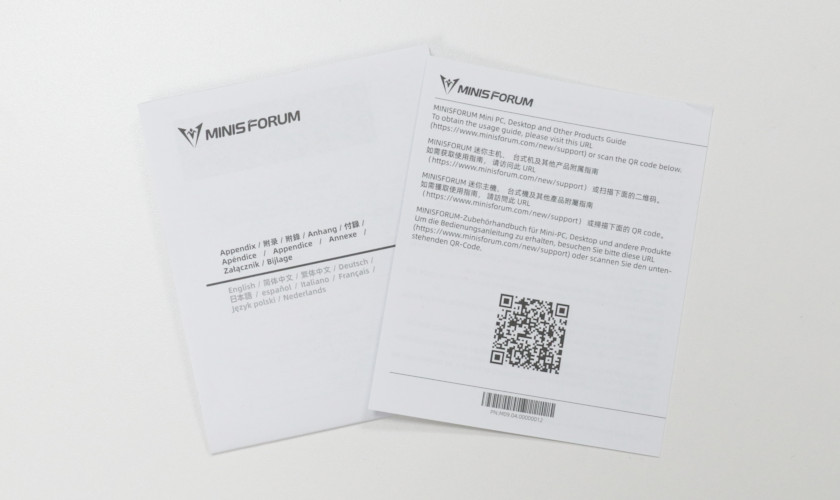 マニュアルはサポートの案内、注意事項などが書かれた付録の2種類。