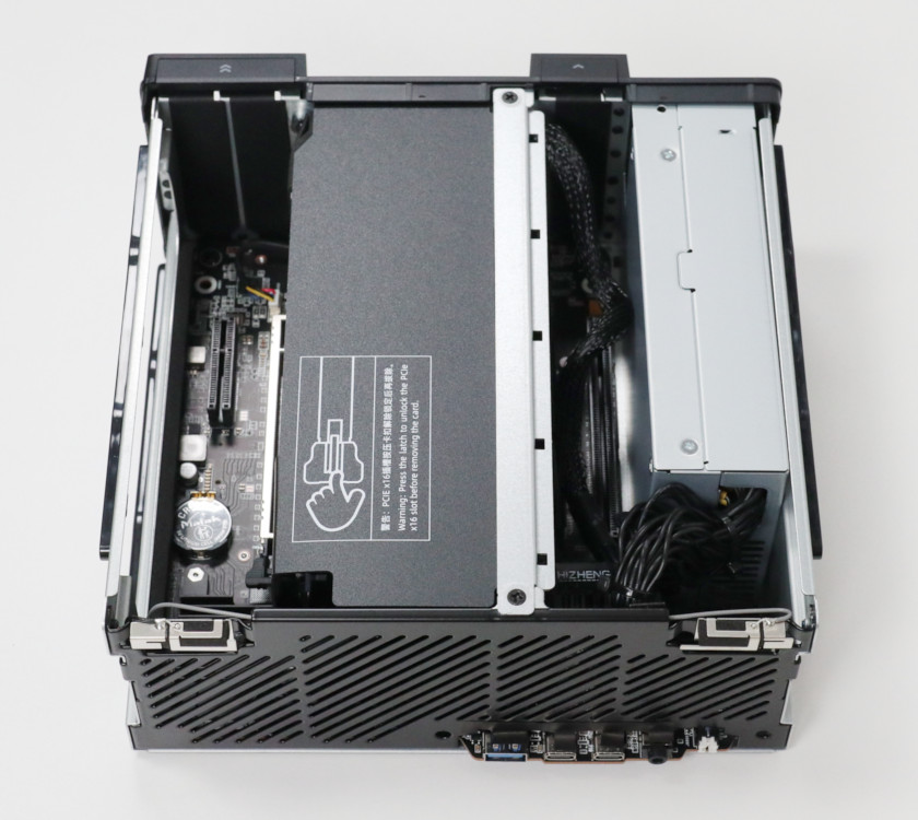 グラフィックボードの吸気用に、縦置き時天面になる面にもパンチ穴が開けられています。