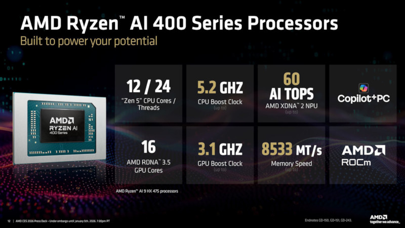 2026年1月5日、CES2026の基調講演内で、AMDは「Ryzen AI 400シリーズ」(コードネーム:Gorgon Point)を発表しました。